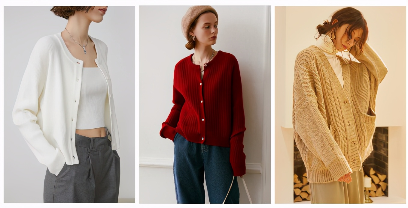 针织开衫作为普及率最高的外套,种类其实有很多,像螺纹款、渔夫款、麻花款、廓形款…一大堆。