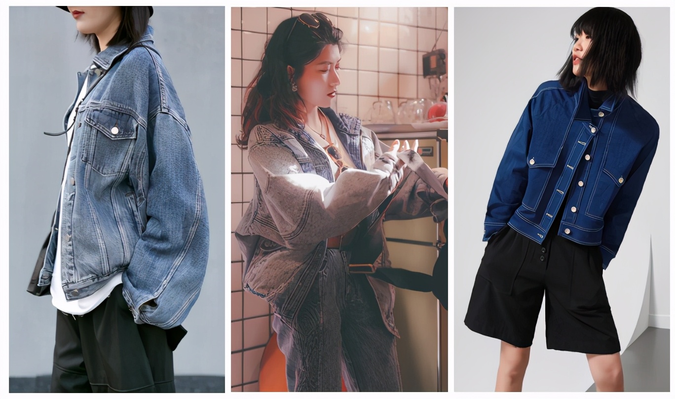 从款式上看,姜女士会更偏爱宽松型的牛仔夹克,穿着就很率性。