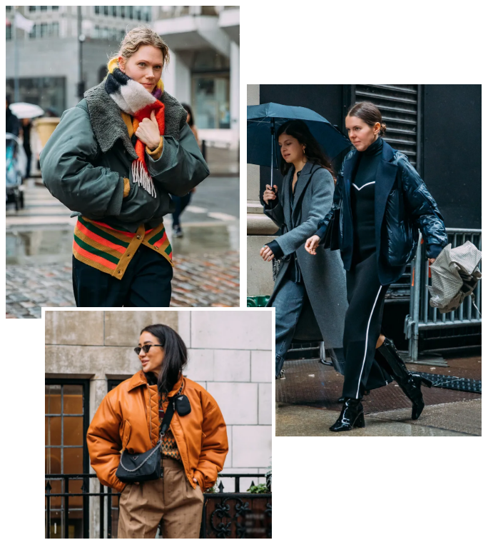 同样时髦系数比较高的还有运动夹克型,这是时装周外最常见的廓形,既有街头的潮流感,又十足保暖。