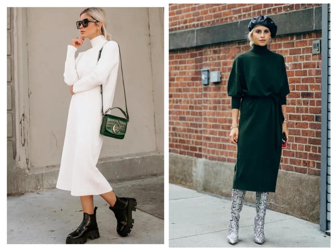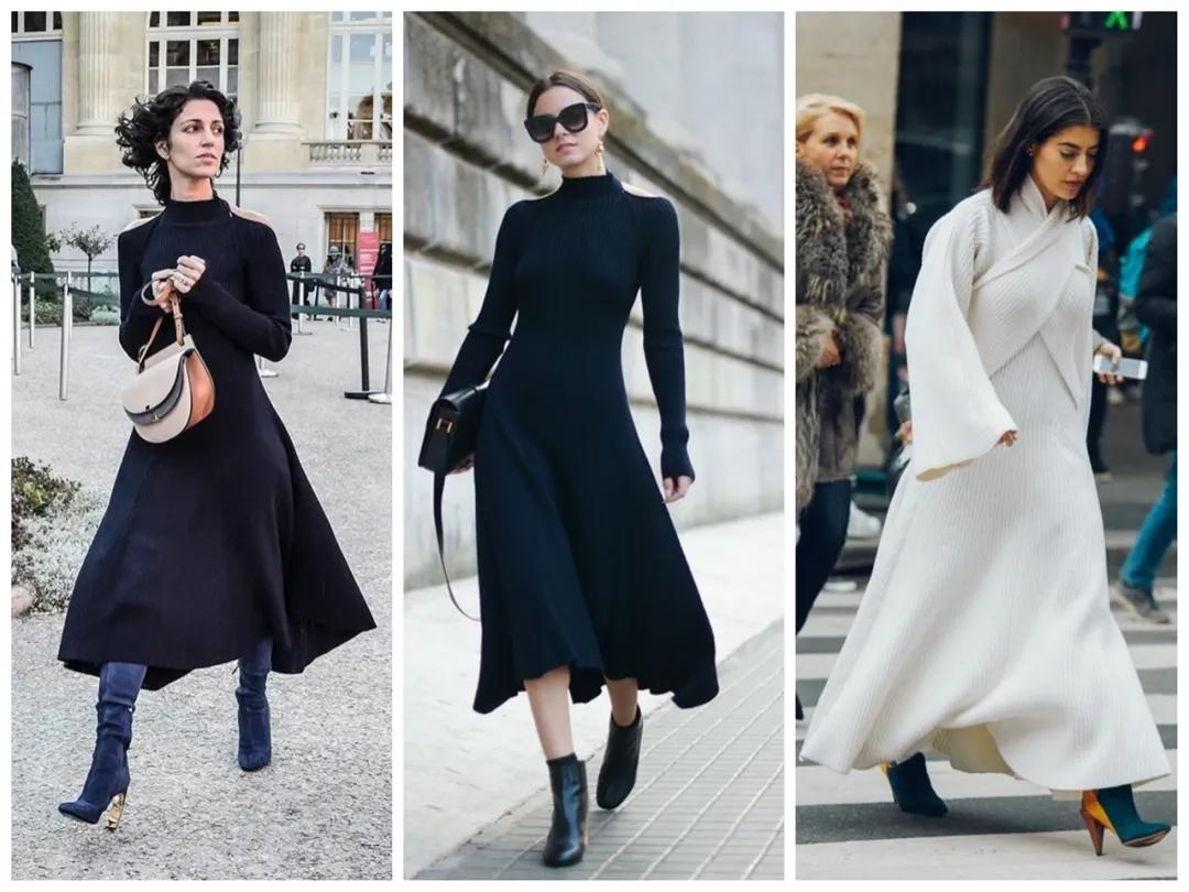 而这也是秋冬针织裙最实用,最经典的搭配套路。