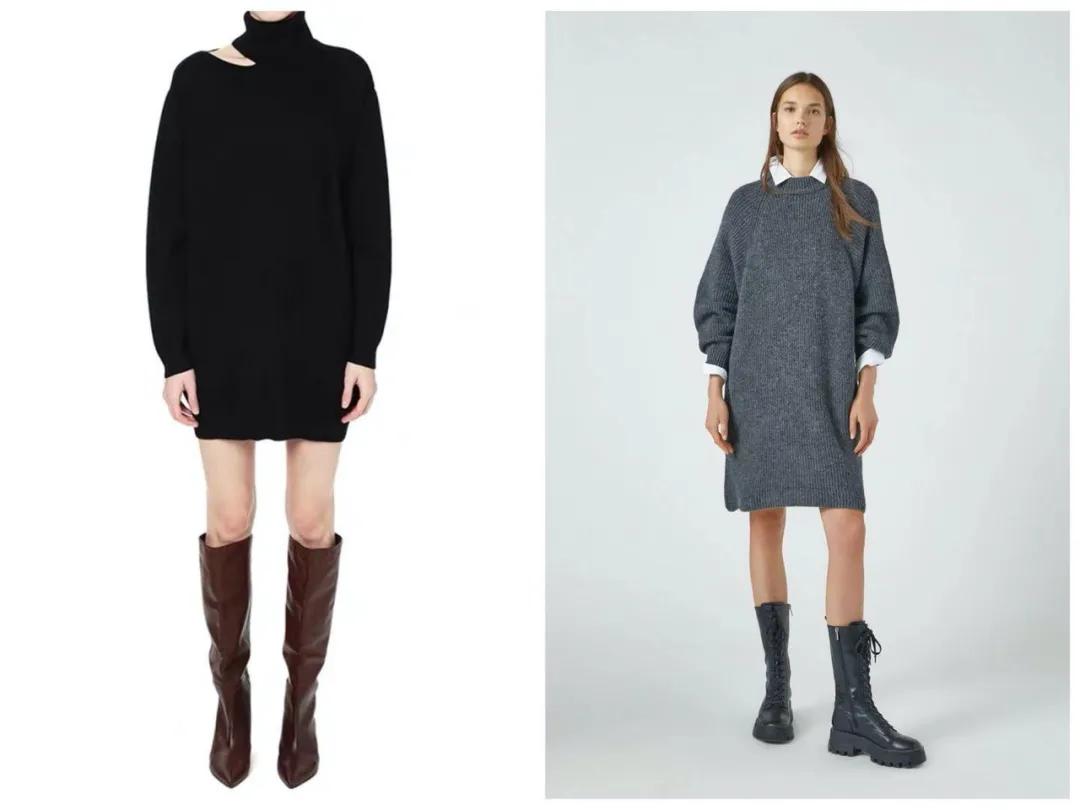 1)短款针织裙,拯救了我这种身高不足160却想穿针织裙的人!搭配长靴,立刻腿长两米~小个子也能拥有飒爽的气场。