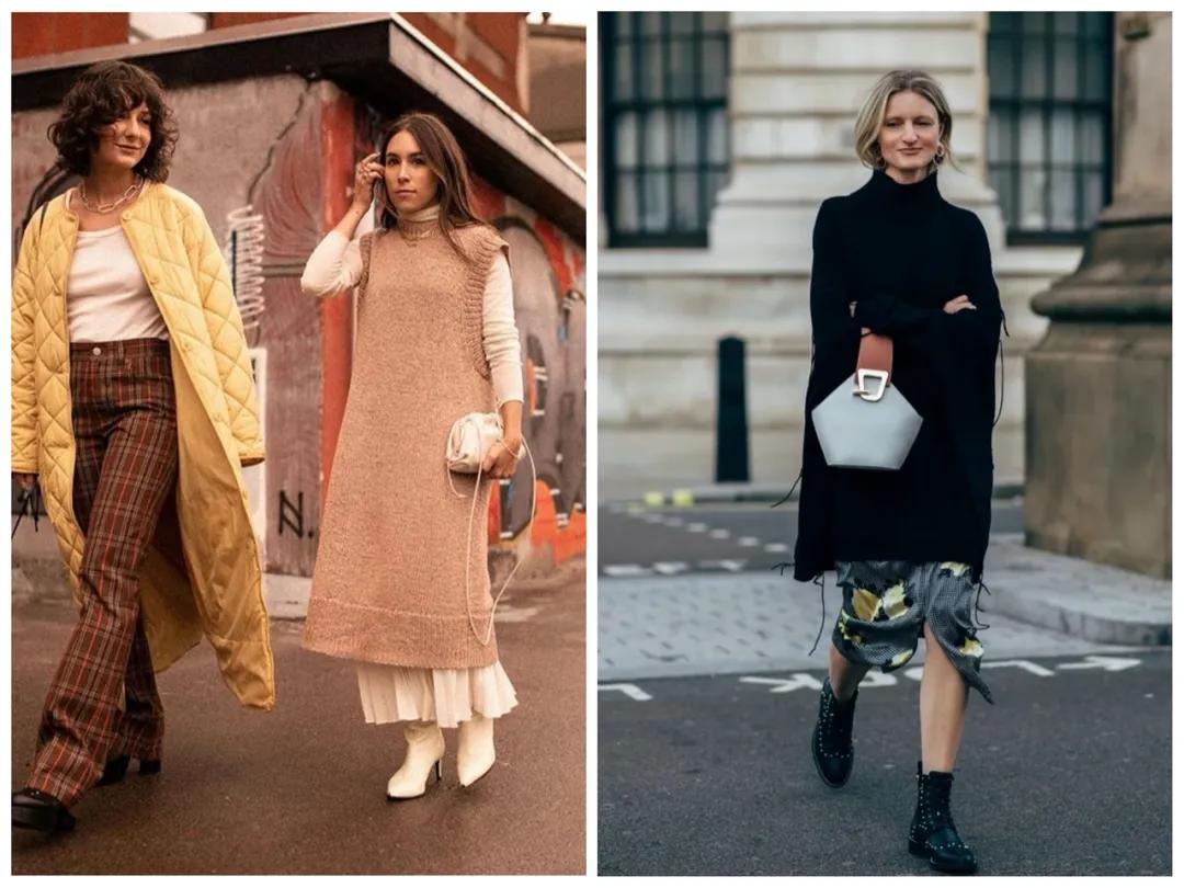 对了,今年针织裙还特别兴叠搭~长裙+飘逸半裙/宽腿裤,只露出一点点衣角,层次瞬间分明。