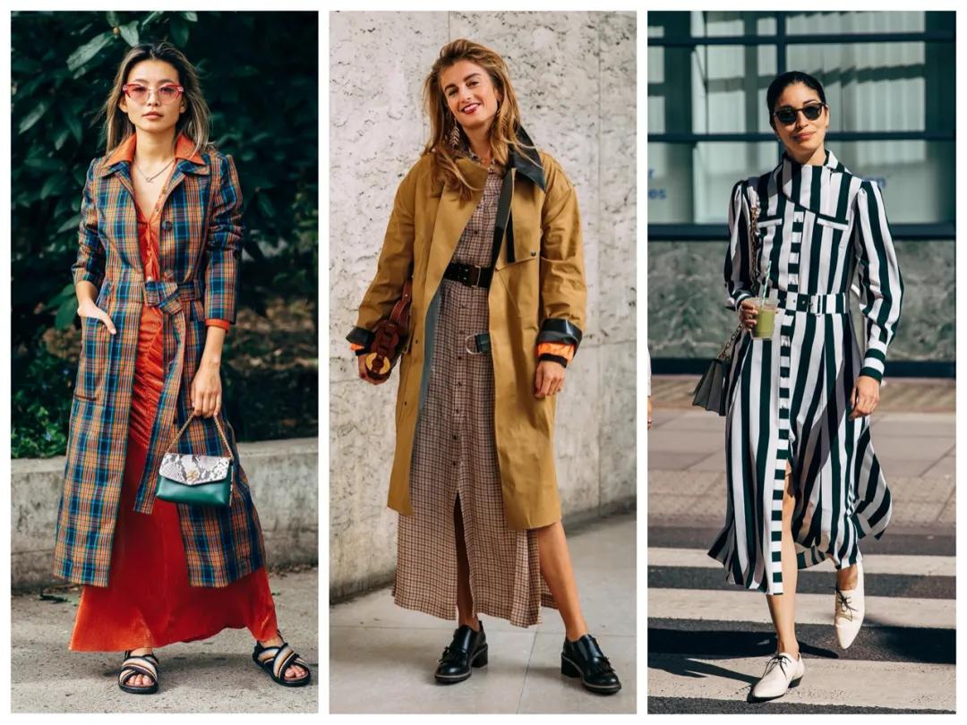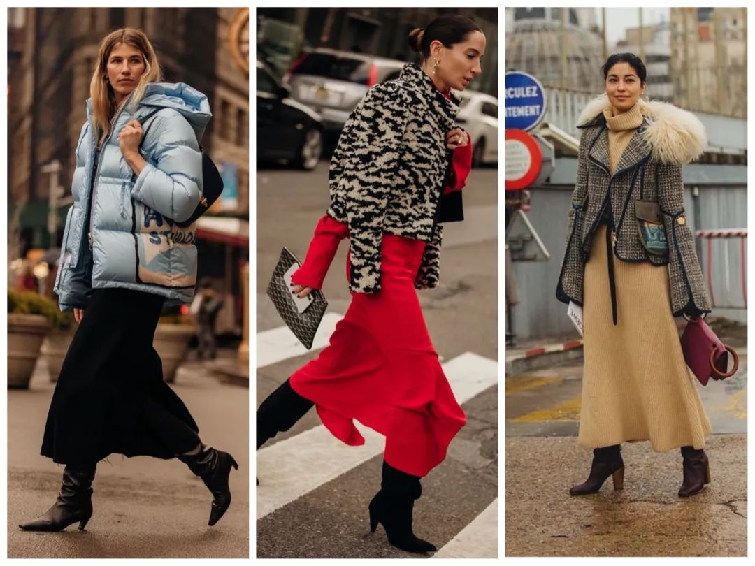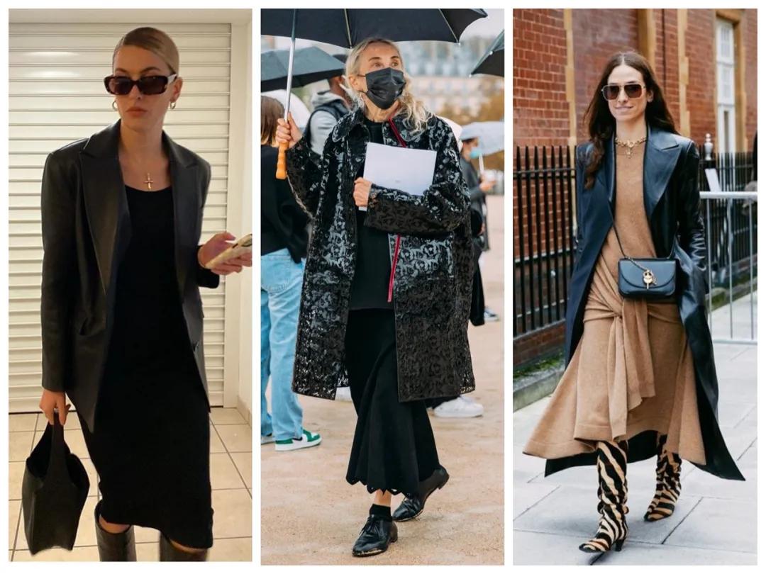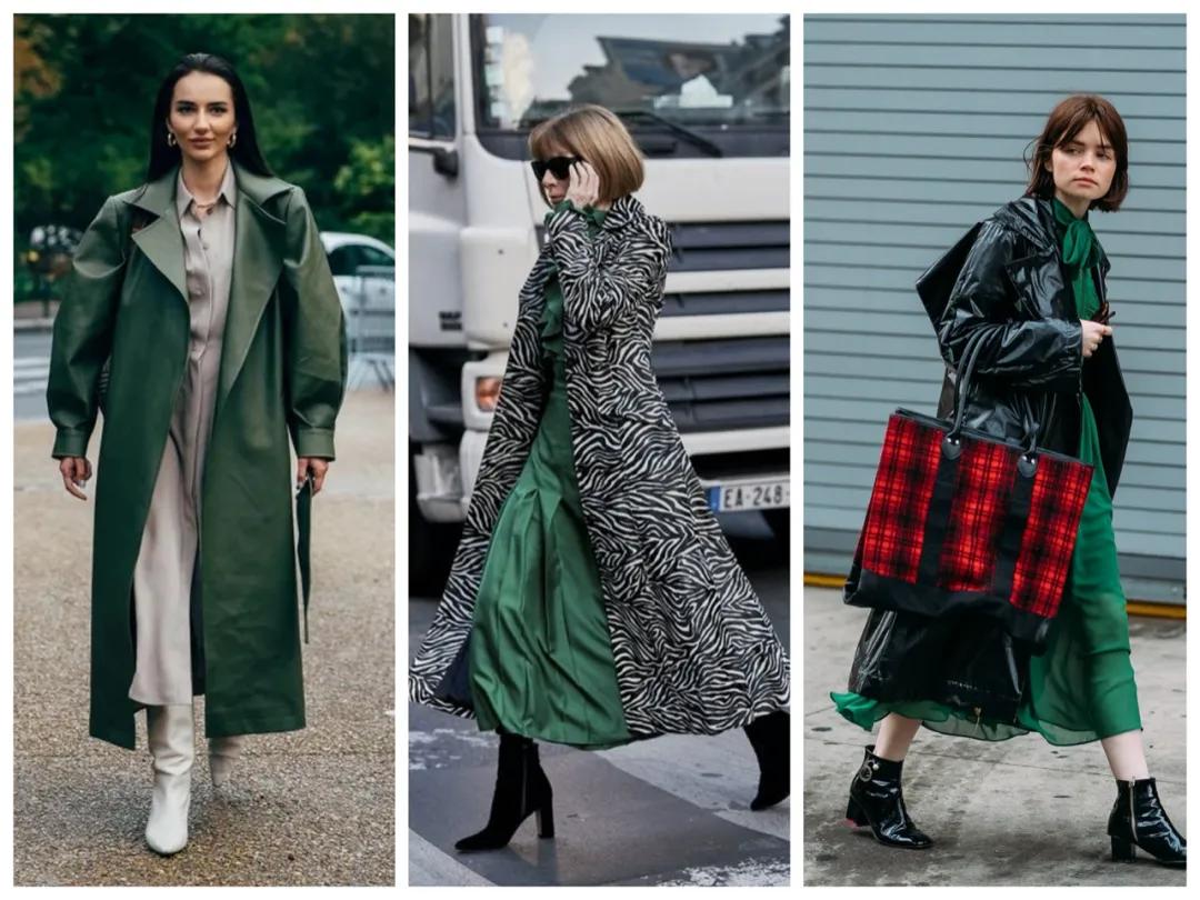 尤其是长裙+长大衣组合,内外衣摆相差3厘米左右为佳,参差摇曳,有层次感。