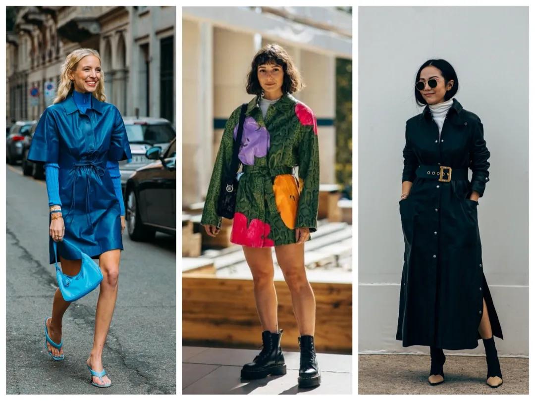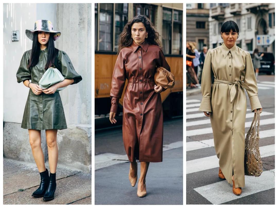 还有大热的皮质元素,结合衬衫裙,刚好不会那么犀利强势。而且,带扣的皮质衬衫裙还能当外套,一衣两穿~