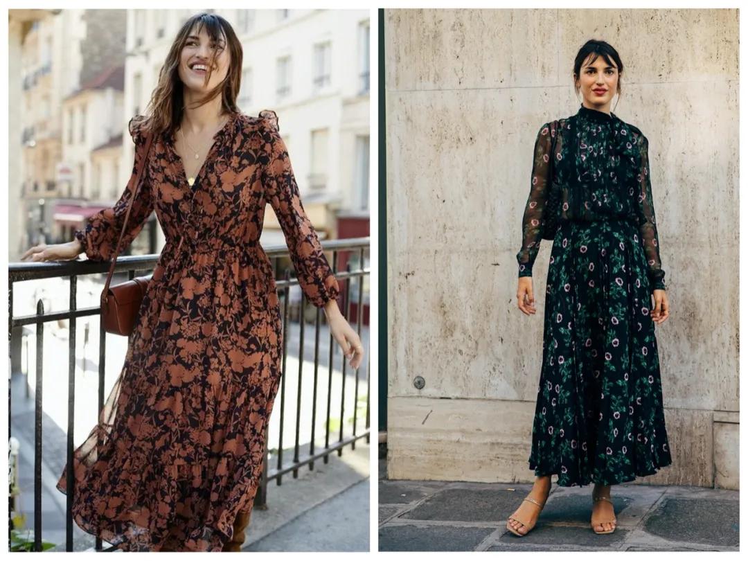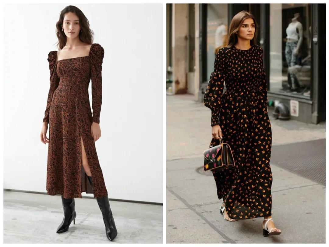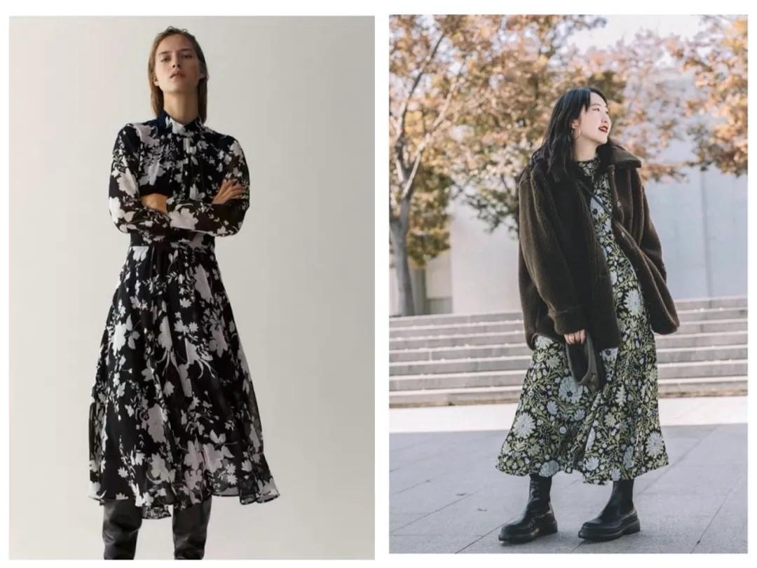 我自己秋冬衣橱里的印花裙,就几乎全是黑色底色的。搭配最常见的黑色大衣,小黑靴,黑色打底裤,和谐不出错。