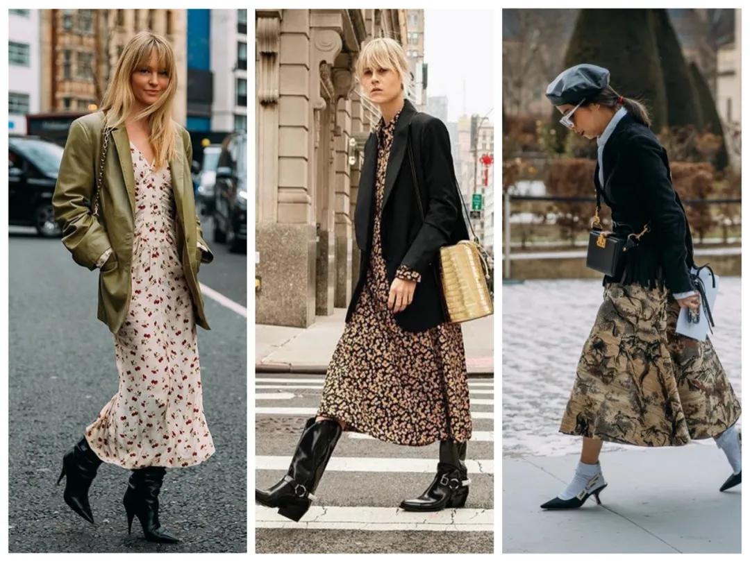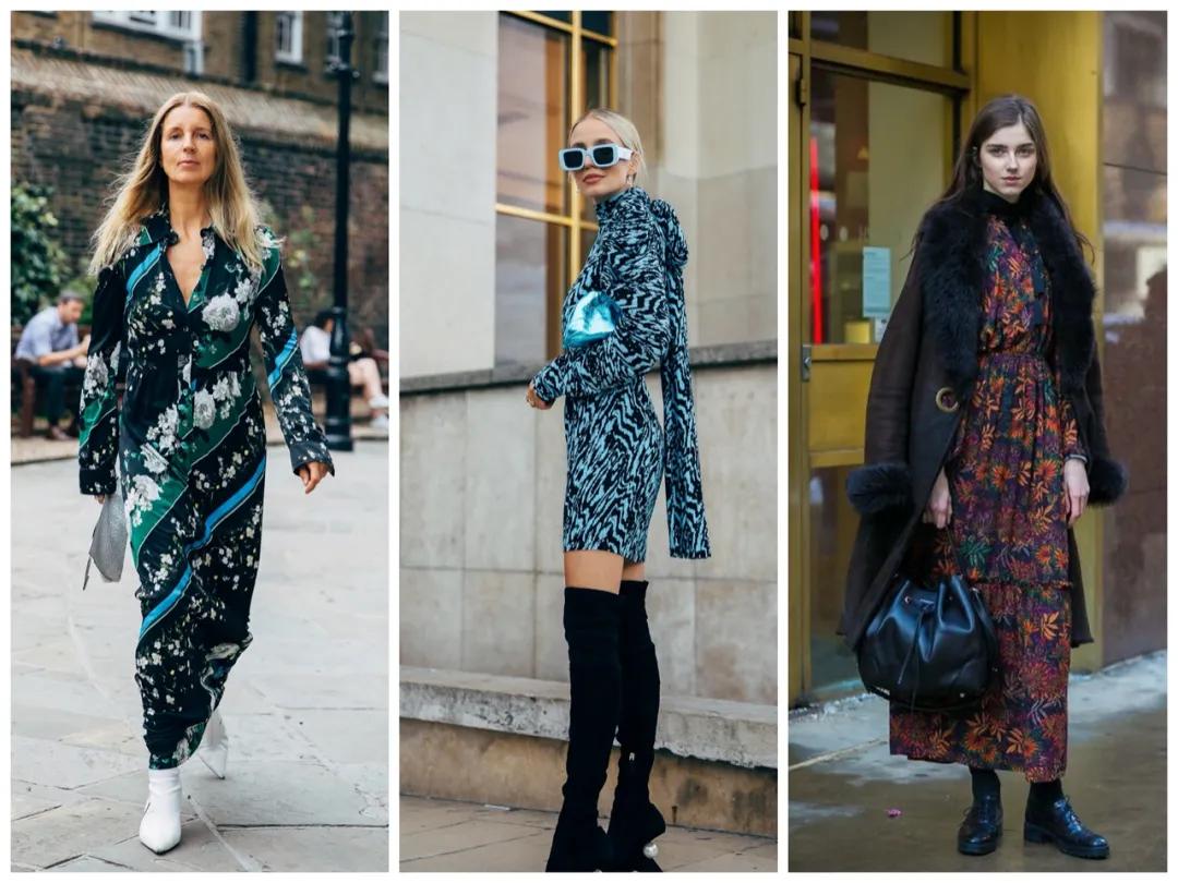 1)秋冬印花裙,首选底色为深色的。优点在于有秋冬感;能与多数秋冬深色单品搭配;比浅色有质感;搭深色打底裤不易穿帮透出来。