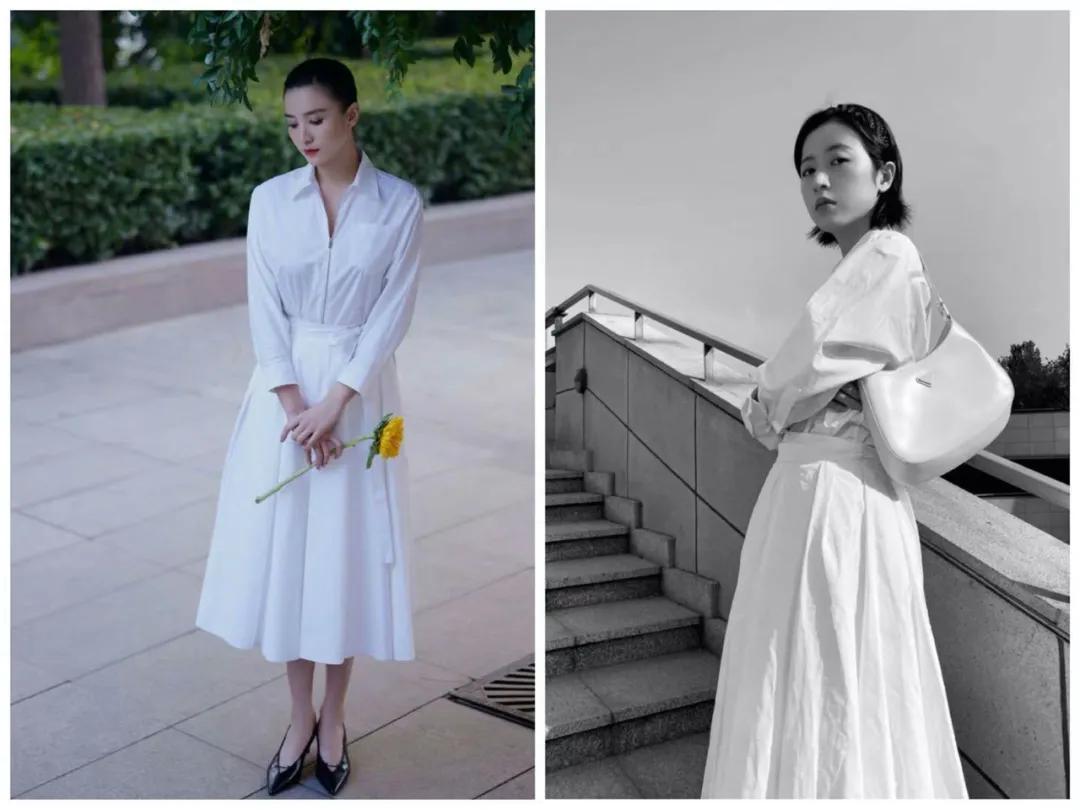 重新走上极简之路的Prada,最近找来一众明星为新款包包Cleo拍宣传照,Miss 烧饼也发现,宋佳和周雨彤撞衫了一款衬衫裙。