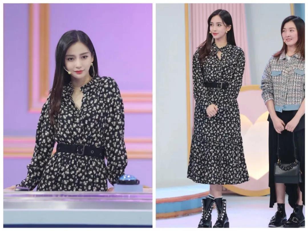 担心这种碎花容易过于田园感?加一条酷酷的黑色铆钉腰带,踩一双马丁靴就行,分分钟变成女团私服!