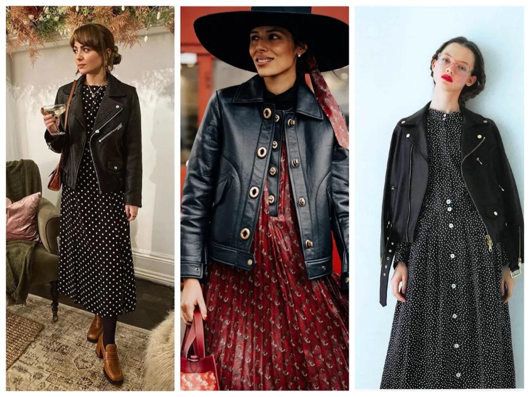 法国博主Alice之前还用机车夹克搭配波点连衣裙。甜酷甜酷的,复古帅气,哈比人或温柔挂的妹子都可以放心copy。