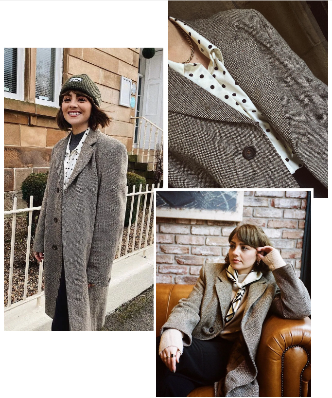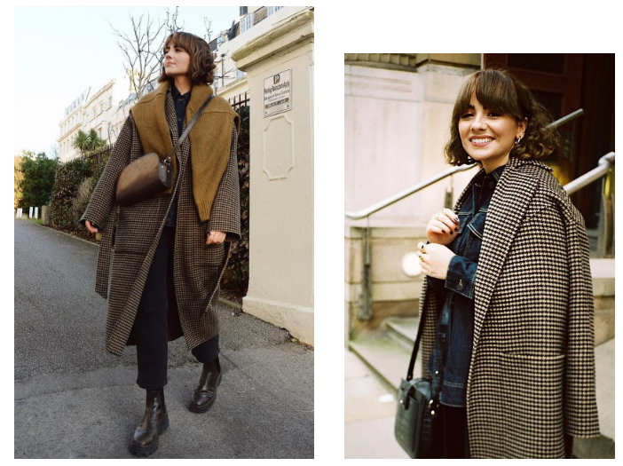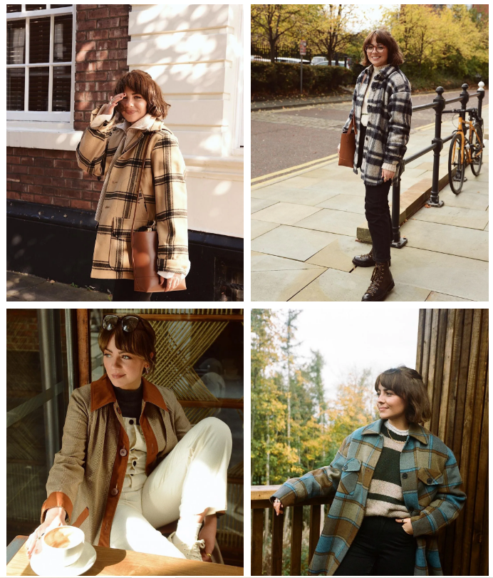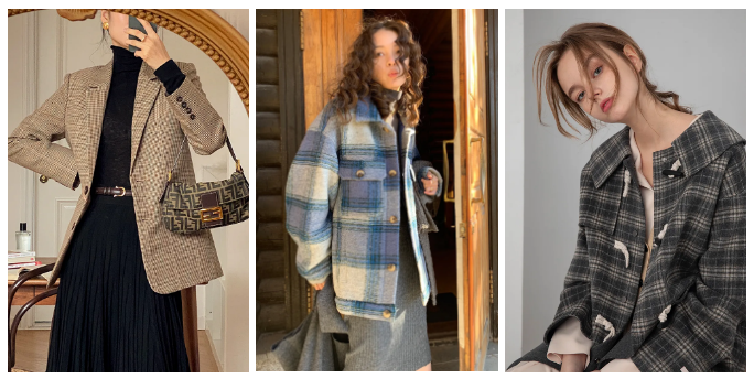 还有一些格子的毛呢外套,衬衫款、夹克款、大格纹、小格纹…都比纯色的基础款更有看点。