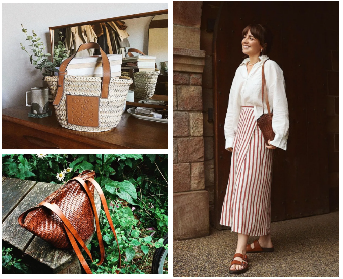 出去度假时用得最多的是Loewe的菜篮子,米+棕的配色,和ST. AGNI(澳洲品牌)的深棕色编织包。