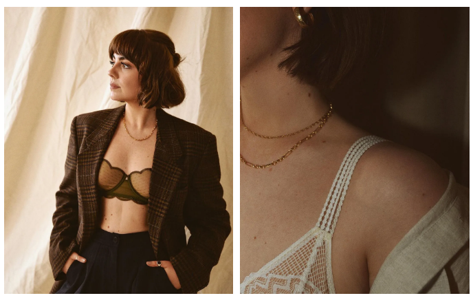 像这样类似的金属链,Alice还有个更细巧的。来自英国品牌MIKAELA LYONS。