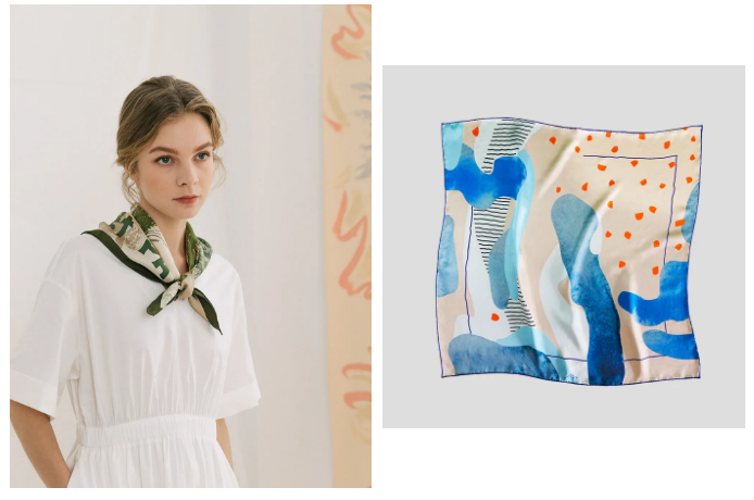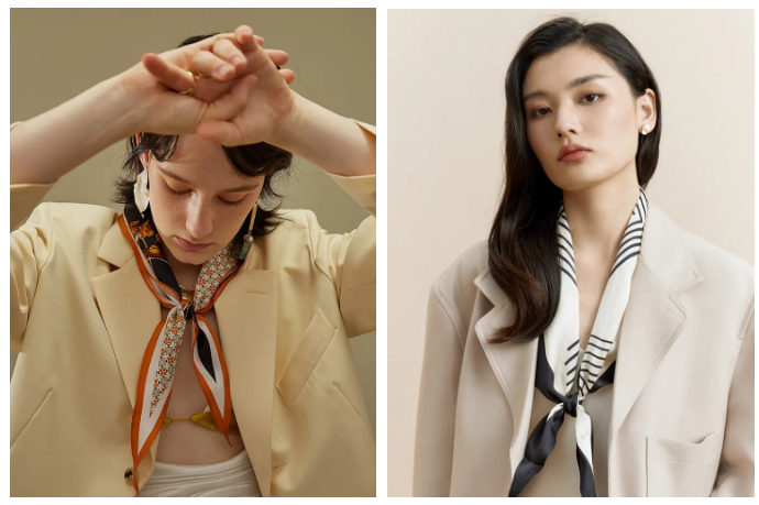 她也算是个丝巾达人了,不是数量多,而是用的很频繁。其实细数一下,常用的就三条: