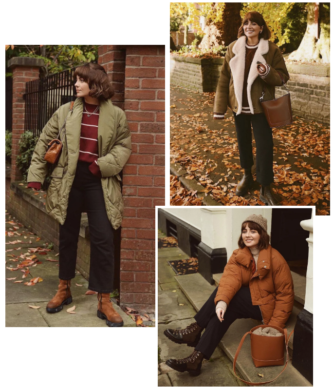 进入深冬后,还会换成厚实的羽绒服/毛毛外套+长裤+靴子。高保温穿搭,即便是我们的北方妞,都能夸出一句“实穿”。