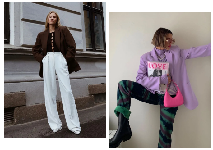 比如纯色西装,她就会pick宽肩设计或皮革材质。这两件分别来自The Frankie Shop和I AM