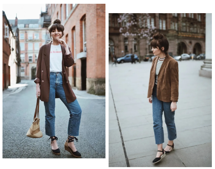 哪怕是3年前,已经开始做时尚博主的她,身上还有小西装、渔夫鞋、大刘海、丸子头…这些仿佛回到2015的“流行单品”。