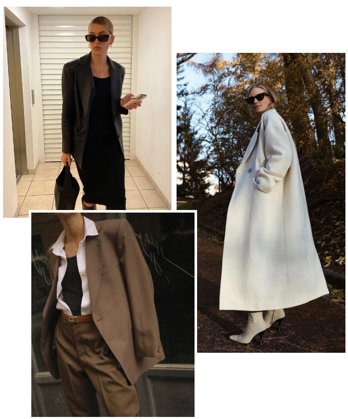 除了这些基本思路,Alice偶尔还会穿两件外套,比如oversize大衣+牛仔外套。See,这种外套+外套的叠搭并不会浮夸不实用,你完全可以温度风度兼具: