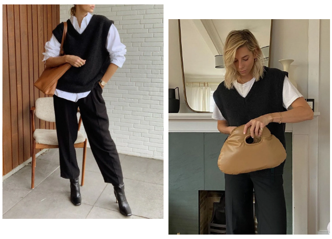 Filippa K这件黑色马甲穿的人不少,荷兰博主Anouk Yve和英国博主Lindsey Holland分别搭了衬衫和T恤。但这件偏厚,肩膀处比较立体,更适合上身瘦的女孩穿。而且价格不便宜,要2k+~