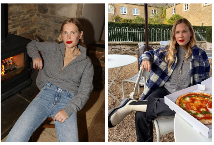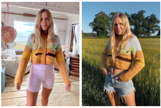 这个牌子的毛衣都蛮可爱的,伦敦博主Jessie Bush也有在穿。她这件小开衫穿了好几次,从居家穿到出去踏青~
