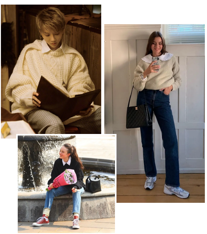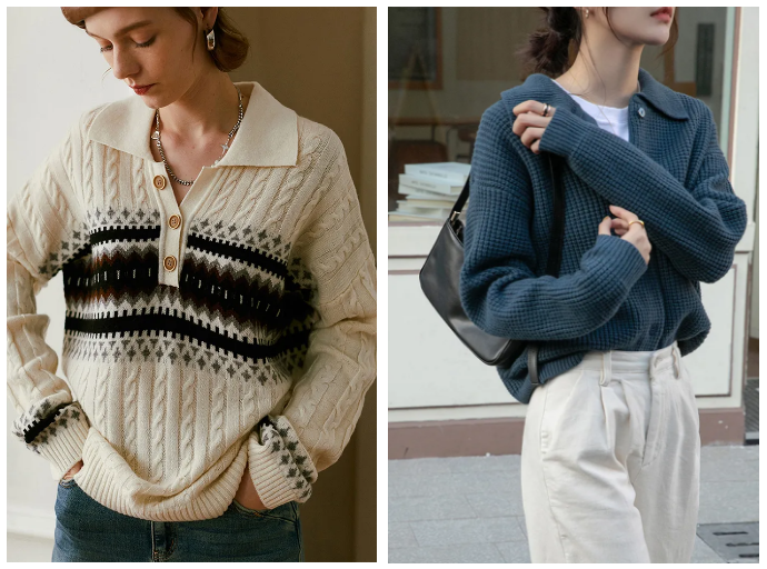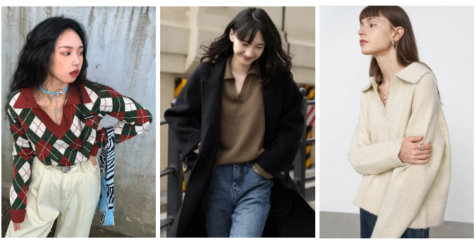 没想到吧,今年开口的翻领毛衣火到还能分出这么多分支~~