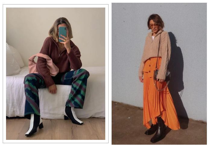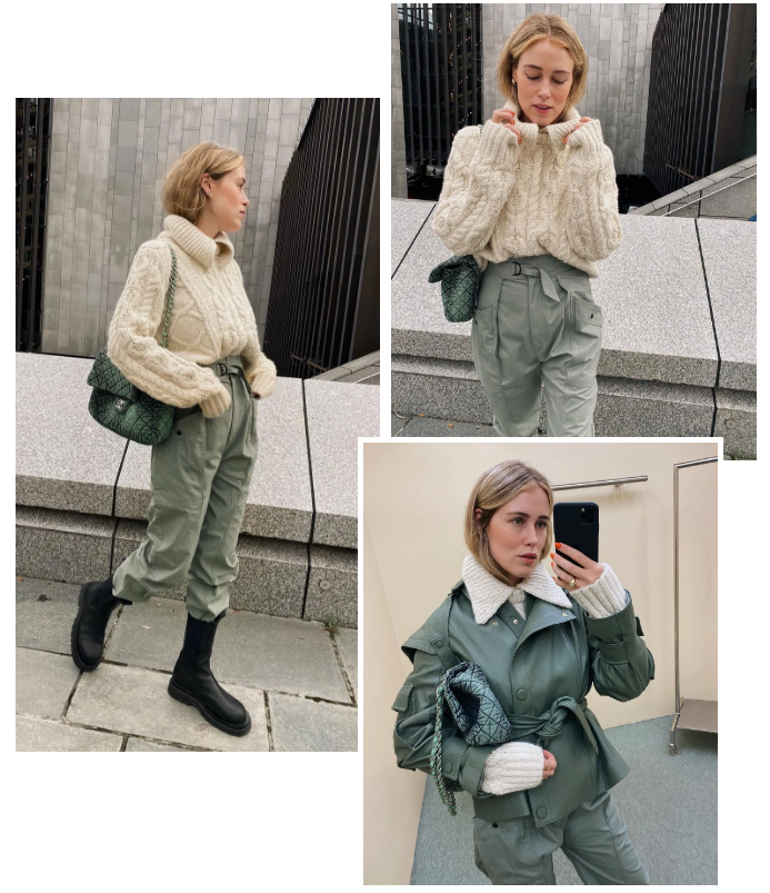 擅长玩色的澳大利亚博主Maxine Wylde也入手了拉链翻领毛衣。虽然毛衣选的都是常规色,但她给搭配了吸睛下装,符合她的一贯作风~