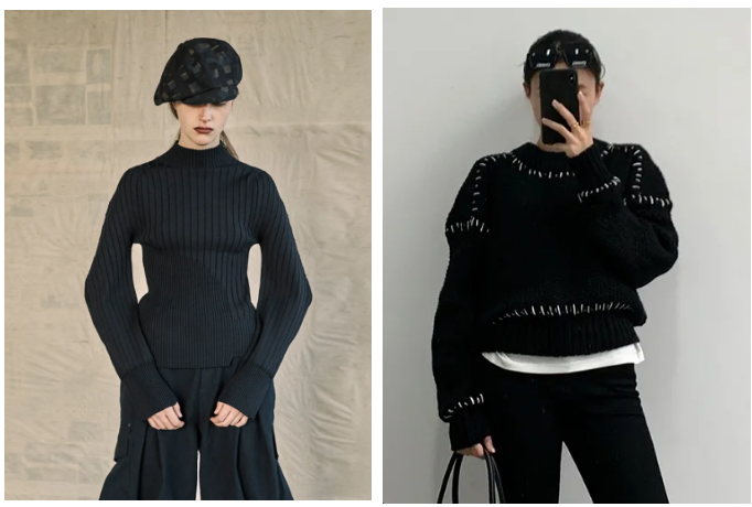逛日杂的时候,发现日杂中有个很特别的毛衣趋势,就是大量的基础黑、基础白。