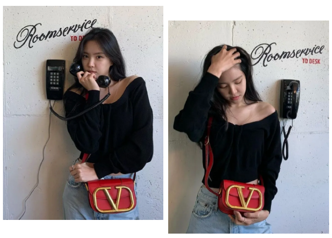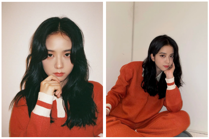 JISOO刚前几天穿了件红白配色的,配上她的温柔卷发,氛围美人没跑了!