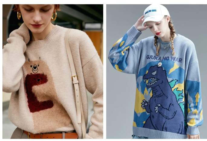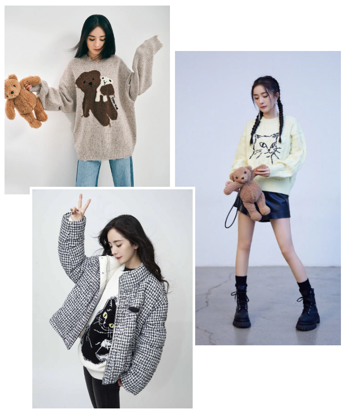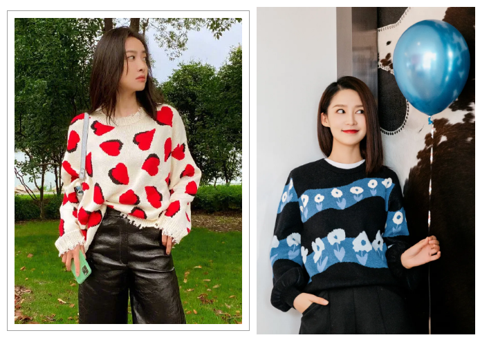 演员白鹿最近也在微博上发了一个毛衣搭配教程视频,里面分享了5款毛衣,其中有3件都是这种童趣图案的,感兴趣的妹子可以去微博上找找视频~~