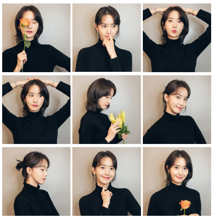 前阵子允儿发了一组拿花九宫格,穿着黑色基础款高领毛衣。人比花甜,女团门面标杆真不是瞎吹: