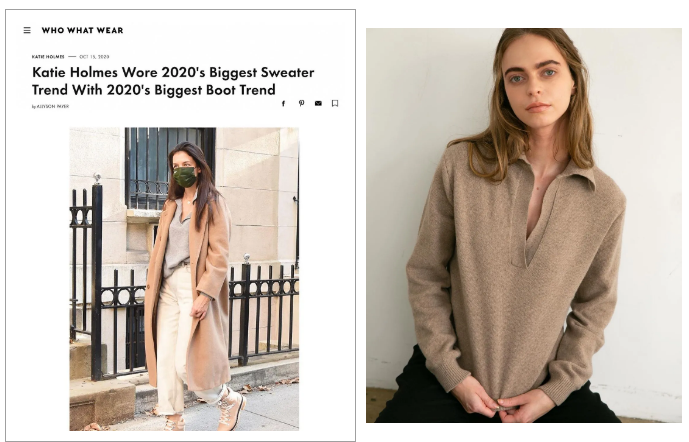 想象不出来?喏,就类似苏瑞妈穿的这件ALMINA,被时尚网站WHO WHAT WEAR评为“2020最大的毛衣趋势”。