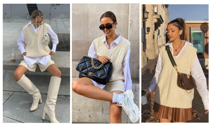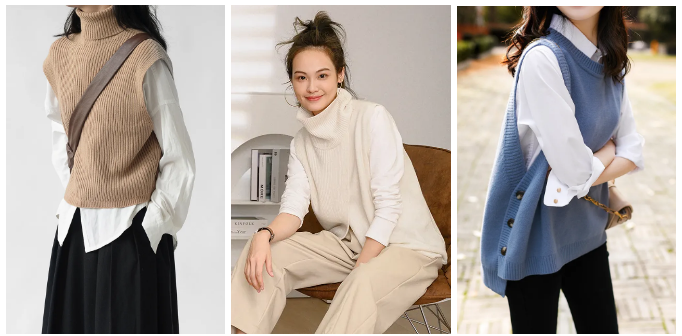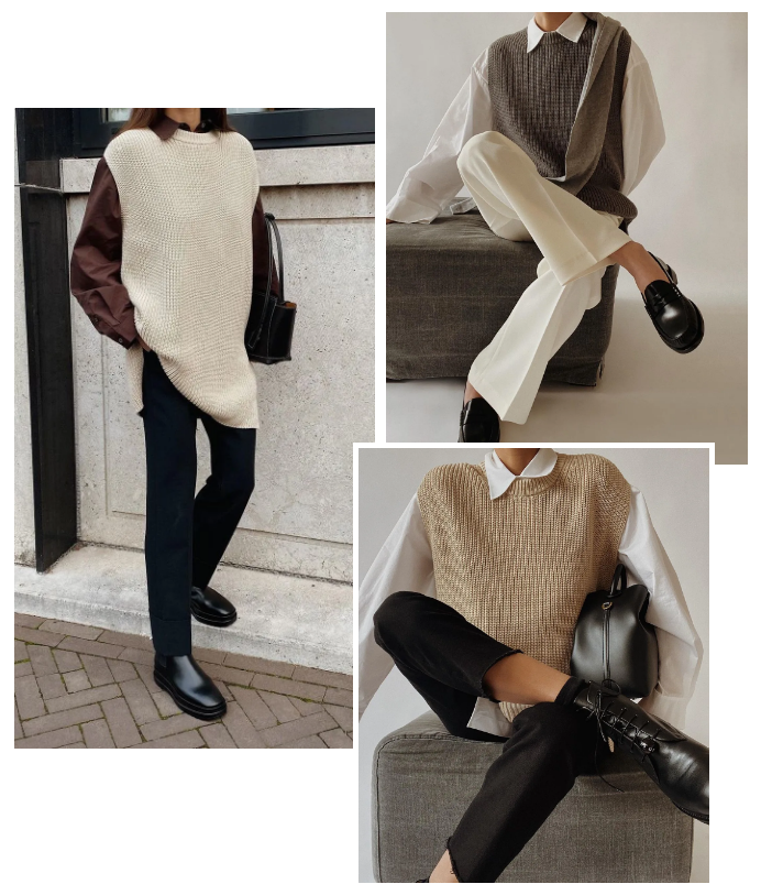 至于搭配?上面这么多图大家也能看出来,博主们最爱的都是马甲+衬衫,外面可以套任意外套,衬衫里面也可以叠加轻薄的针织衫、打底衫。