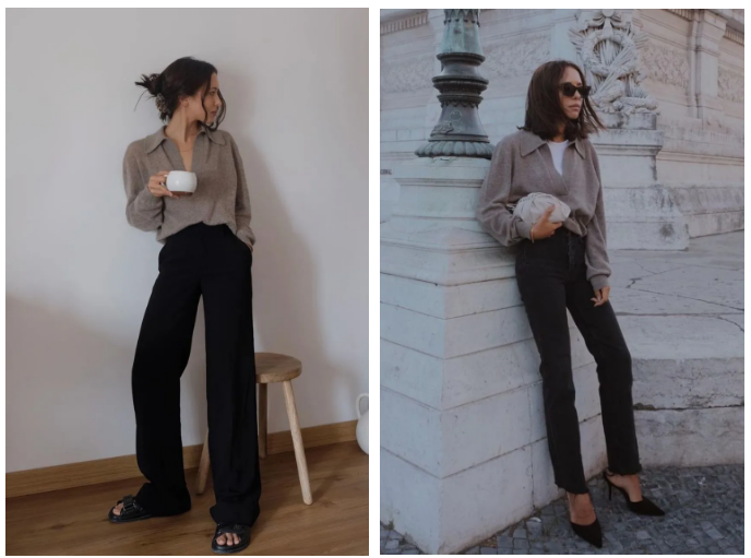 想要再增加层次感,还可以像法国博主Leia Sfez这样内搭一件衬衫,完全不挑人。(ps,下面两件毛衣都是Mango的,就说它们是今年翻领毛衣大户吧~)