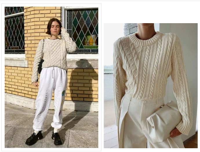 比起基础平针款,有肌理的款式也会更有存在感。日杂很喜欢推渔夫款和麻花款,都很常见,也好穿: