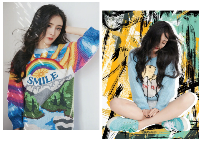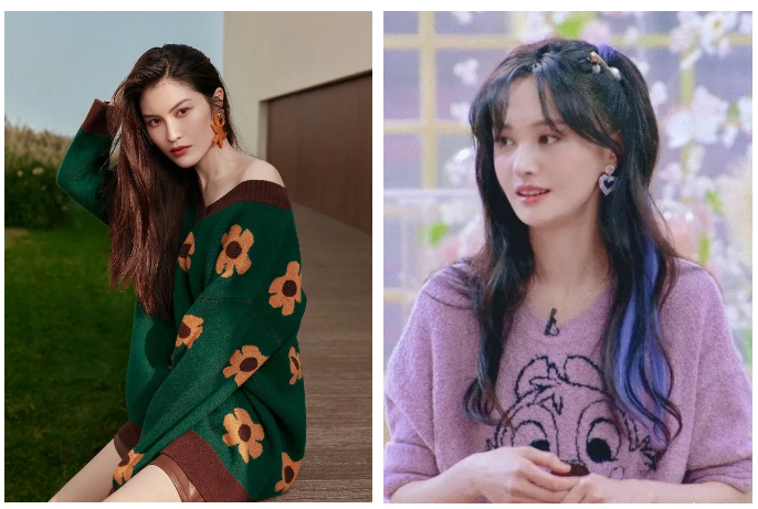 宋茜和李沁这俩美人儿最近也在穿童趣毛衣。