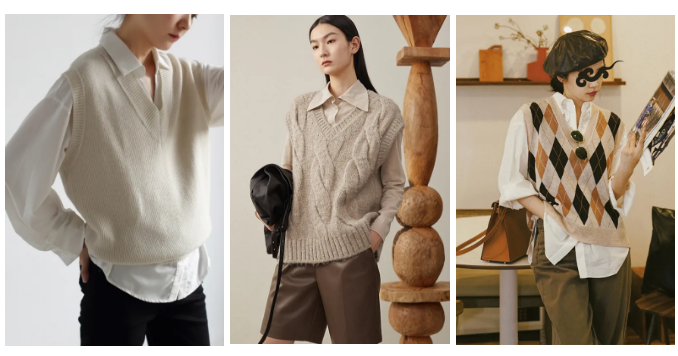 能跟翻领毛衣平分秋色的还有各种马甲。