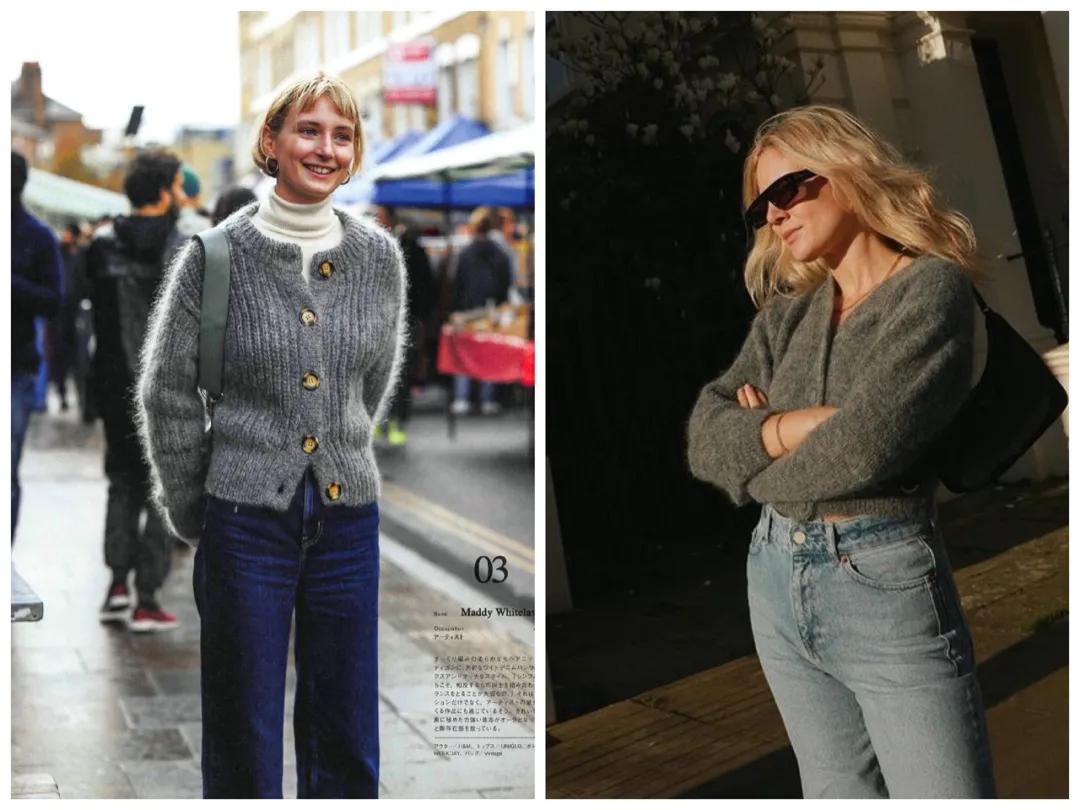 炭灰色的绒绒开衫搭配直筒牛仔裤,放2020年也时髦得不像样!并且,两件单品不难买到,轻轻松松就能模仿。