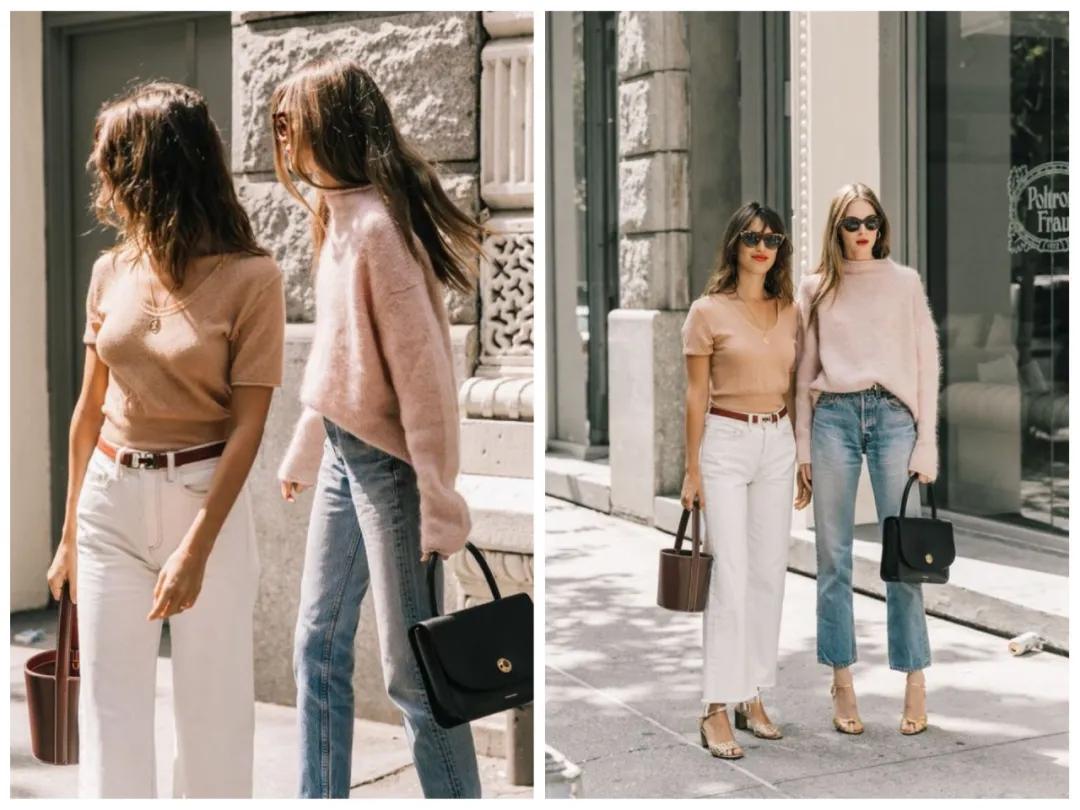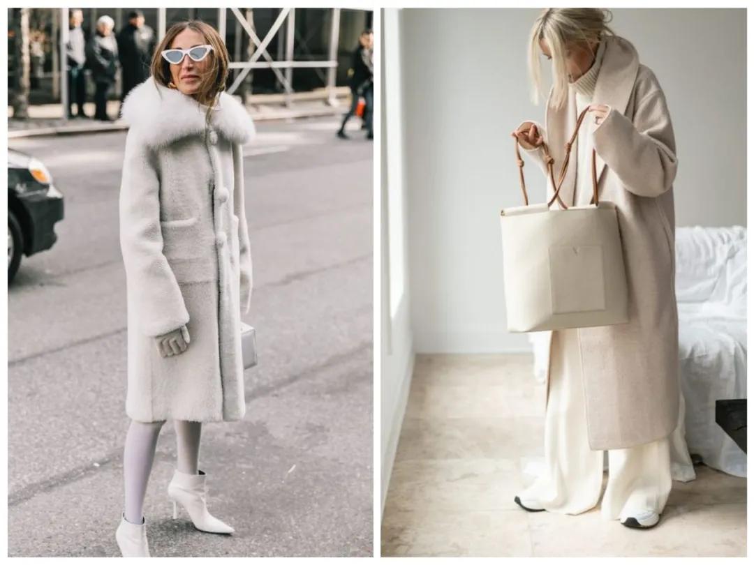 对比一下,像Chloe这样穿统一的纯白,是不是有用力过度的嫌疑?反而右图加入燕麦色调和,层次感和耐看度都提高了。