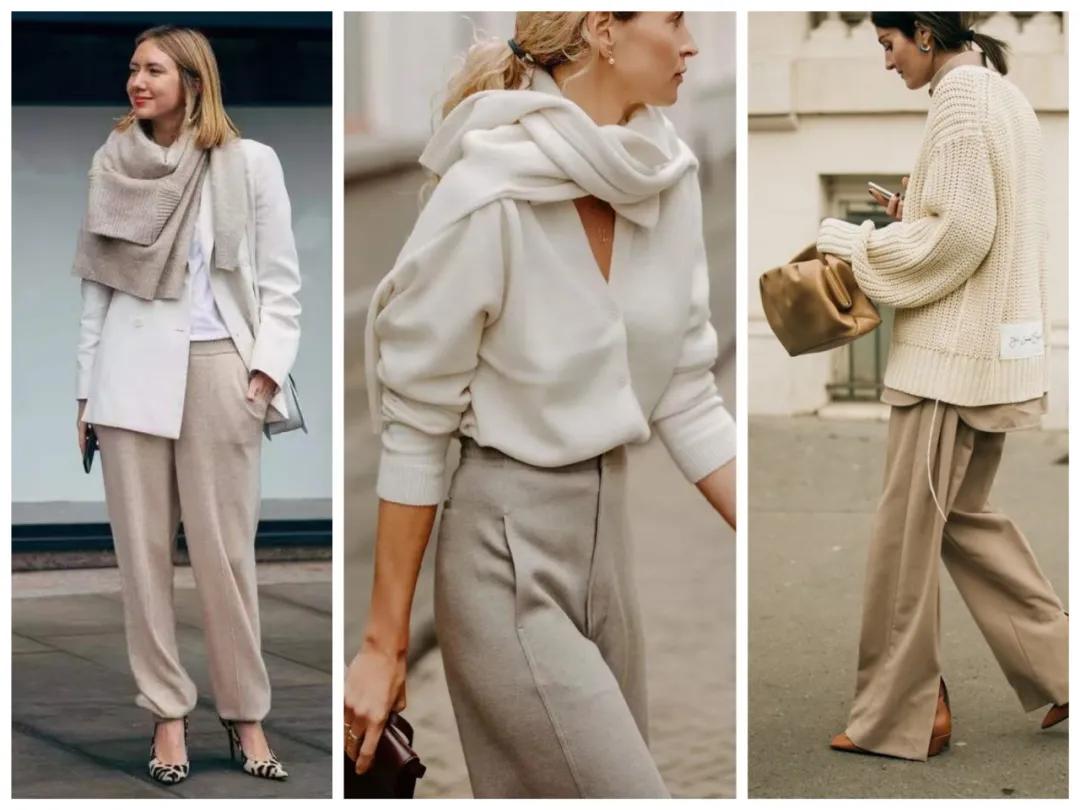 那么,这组配色具体该怎么穿呢?很简单,从燕麦色单品入手比较好把控: