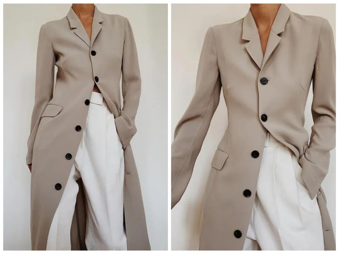 CELINE曾经出过一件,当年超火,Julie Pelipas和Irina Linovich都穿过。且两人时装周的出街思路也出奇地一致:配白色宽腿裤。