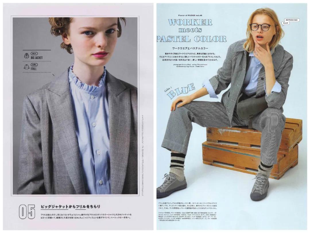 日杂,尤其是《Fudge》还特爱用灰色威尔士亲王格西装搭配蓝衬衫,也是我心目中超经典的一组!姑娘们可以直接学走。