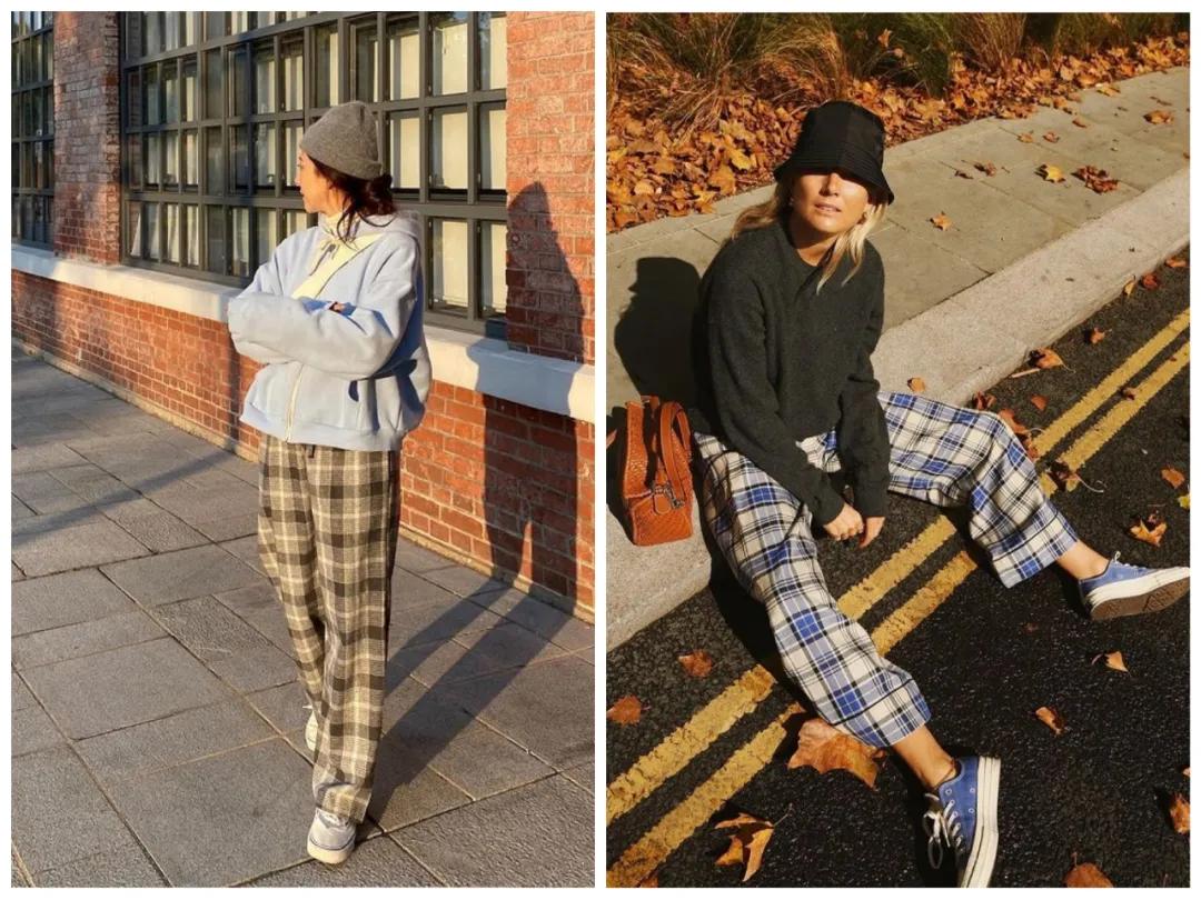 我自己最喜欢Yuini和Lucy穿的格纹裤+卫衣组合!宽宽松松的,身体和视觉都贼舒服~搭配板鞋或老爹,出游约会都能hold住。