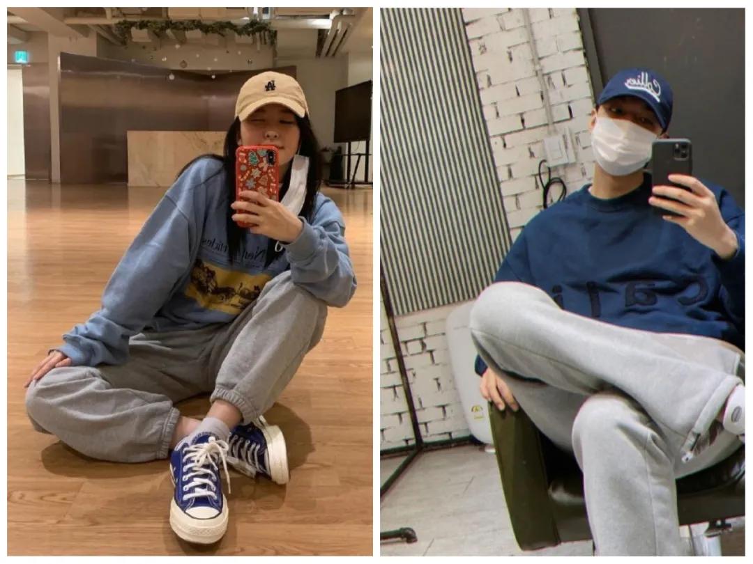 前两天看到李敏镐和涩琪都在穿蓝色卫衣+灰色卫裤,感觉一定很舒服吧!