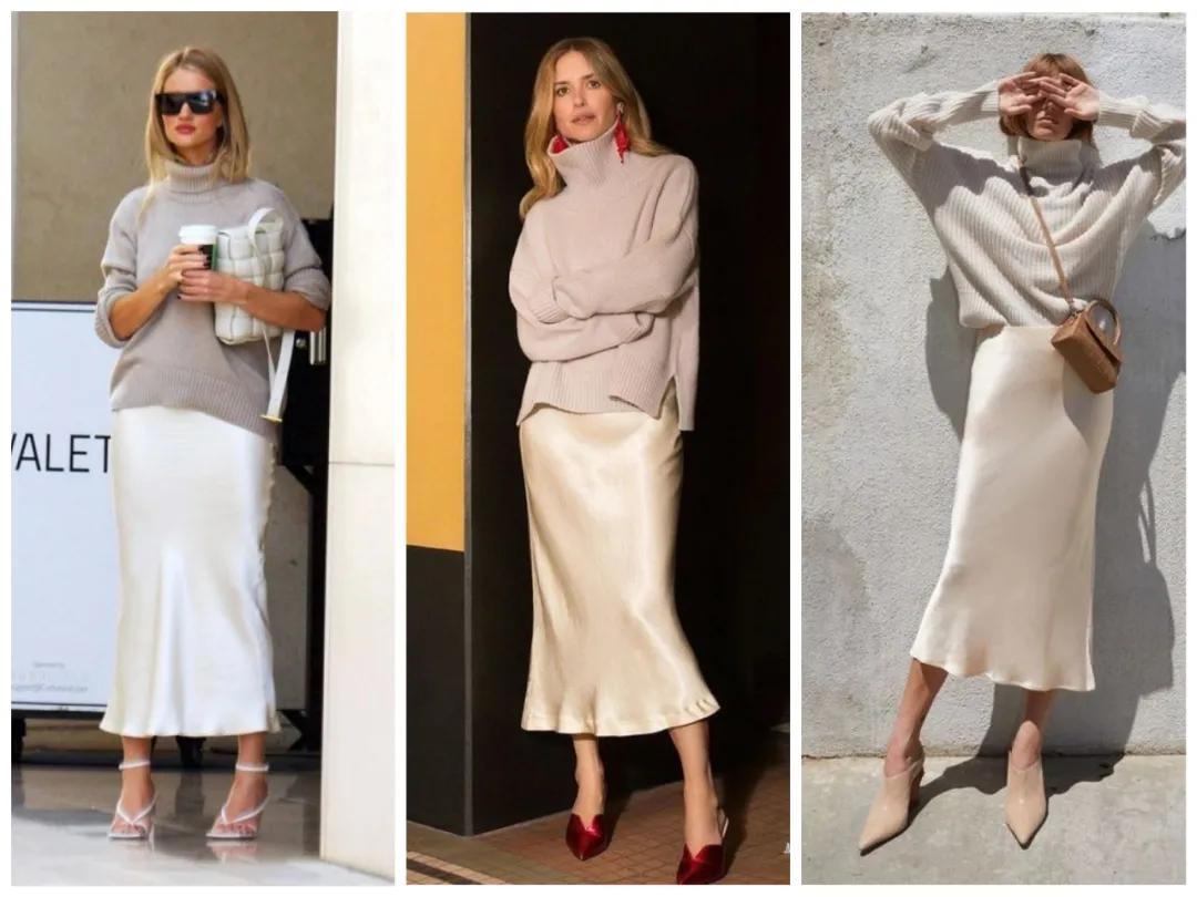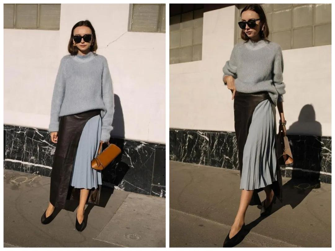 大嫂和时尚博主Pernille Teisbaek都在这么穿,且一致选择搭丝缎半裙。不同材质碰撞,效果不错,适合冬日派对季。