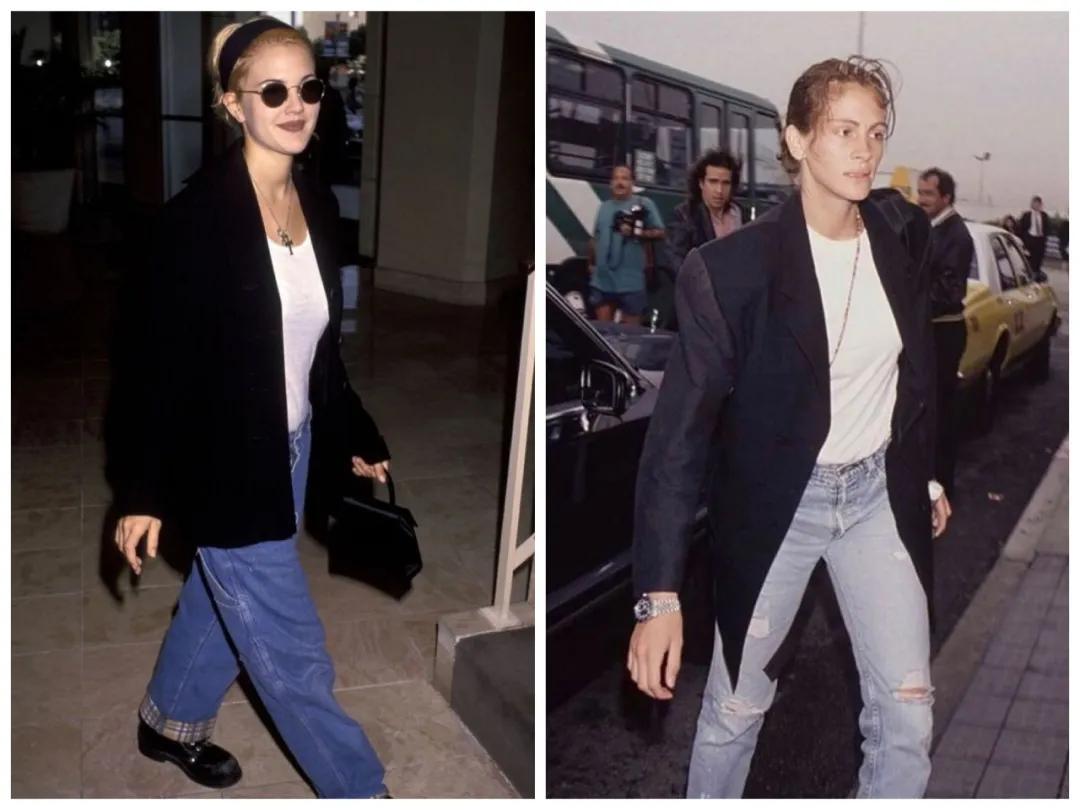 举个例子:黑西装+牛仔裤,90年代好莱坞女星几乎人人穿过,超A超飒!