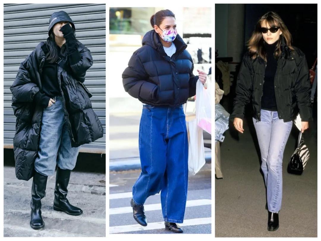 还有黑色羽绒服,黑色是百搭之选,除了小黑裤,浅蓝色的牛仔裤也可以搭。饼boss,苏芮妈都在这么穿。