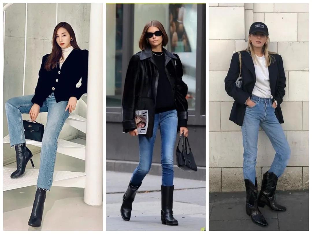 前文说了,黑蓝配最常见的应用就是黑色外套+牛仔服。