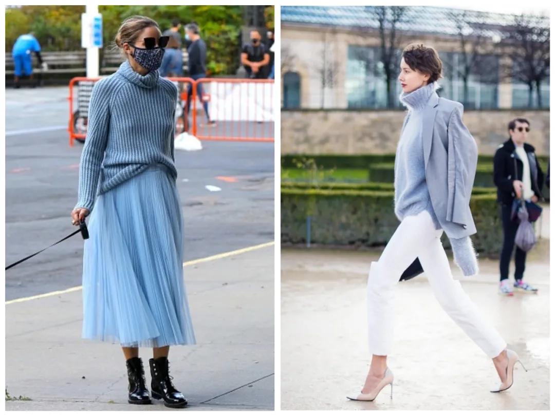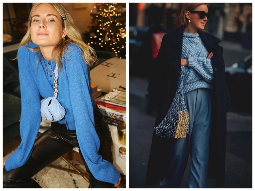 可可爱爱,柔柔软软的baby blue是温柔女孩的秋冬必备!这种蓝偏女性化,搭配黑色刚刚好。