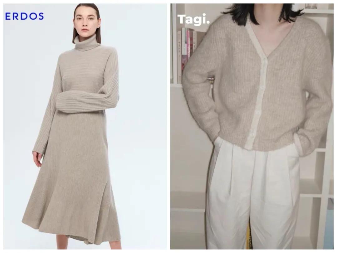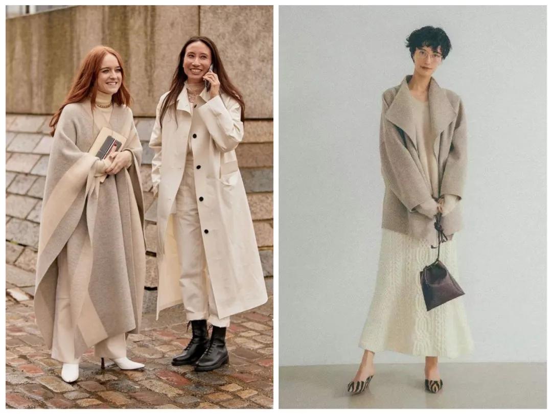 左图外套偏驼色,右图就是偏灰的燕麦色