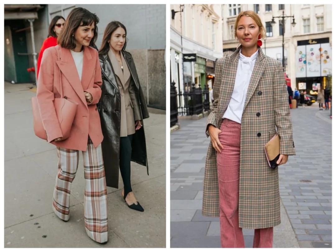 还有秋冬必备的棕色格纹,除了配基础色,用粉色搭也不错。像Alyssa这样穿,复古之余多了一丝甜美。