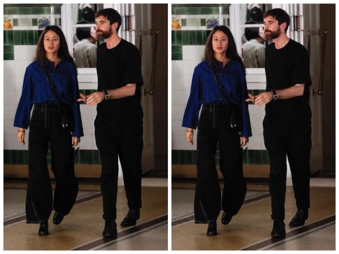 两个颜色十分接近,但又有所不同。搭在一起,达到一种近似于同色系搭配的效果。倪妮给优衣库+J拍的这一组就很典型。
